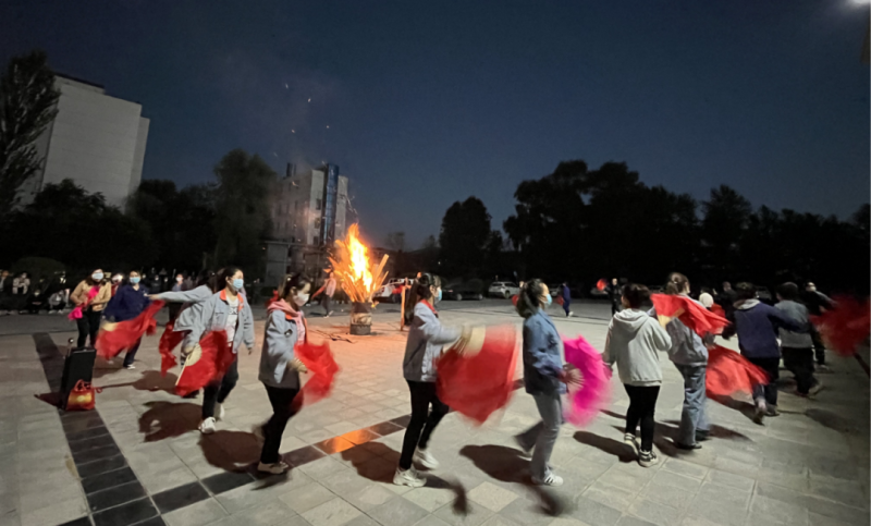 伴隨著歡快的花兒小調(diào),干部職工在月夜里圍繞篝火載歌載舞、歡聚一堂,他們歡樂幸福的表情感染著駐足觀看的每一位工友們。