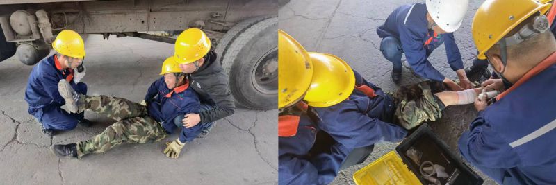 機(jī)械傷害是安全生產(chǎn)人身傷亡事故中最常見(jiàn)的事故類型,組織職工開展應(yīng)急演練,是避免和減少此類事故發(fā)生的重要途徑。為確保此次演練取得預(yù)期效果,配送公司裝卸作業(yè)部提前制定方案,成立安全小組,明確職責(zé)分工,并組織參演人員進(jìn)行演練前培訓(xùn),細(xì)化各環(huán)節(jié)步驟。此次演練模擬作業(yè)人員在庫(kù)區(qū)作業(yè)吊裝貨物時(shí),因自身麻痹大意導(dǎo)致被貨物撞擊致傷,造成機(jī)械傷害的場(chǎng)景。在警戒組、應(yīng)急救援組、檢查組、后勤保障組等各參演人員的密切協(xié)作下,圓滿完成了此次演練任務(wù)。