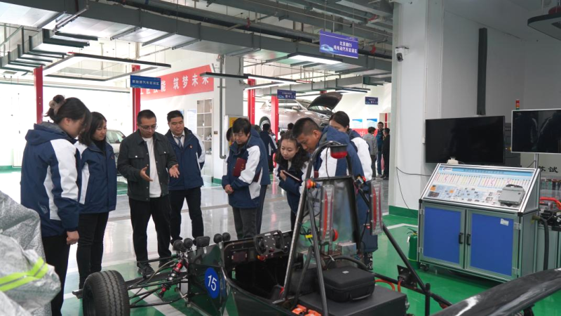在參觀比亞迪E5純電動車實訓(xùn)區(qū)時,大家看到了學(xué)院2023年全國行業(yè)職業(yè)技能大賽二等獎作品的技術(shù)“含金量”,饒有興趣地了解了繪圖-備材-制作-成型的具體過程,以及對轉(zhuǎn)動、逃生、行駛、焊接、拆裝、車架與車身的測試。高校的科研成果凝聚了工匠精神傳承和“惟專惟精、匠人匠心”的人才培養(yǎng)理念,在提升職業(yè)道德修養(yǎng)、增強專業(yè)技術(shù)能力、發(fā)展創(chuàng)新創(chuàng)業(yè)能力等方面全面融入了工匠精神培育。在場的黨員仔細觀摩,向創(chuàng)作單位投以敬佩的眼光。雙方在“工匠精神是培養(yǎng)高素質(zhì)技術(shù)技能人才的目標(biāo)導(dǎo)向,是推動產(chǎn)教融合、校企合作的重要實踐途徑”達成共識。