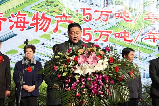 此次投產(chǎn)慶典儀式由青海省國資委副主任毛占彪主持,青海省委常委、副省長駱玉林、青海省人大副主任桑杰、青海省經(jīng)濟委員會主任、青海省政府國資委副主任吳海昆、西寧市政府副市長許國成、中共大通縣縣委書記吳海、大通縣人民政府縣長韓生才、青海省物產(chǎn)集團總公司總經(jīng)理、青海物產(chǎn)工業(yè)投資有限公司董事長王玉輝、青海省物產(chǎn)集團總公司黨委書記白家林以及省、市、縣有關(guān)部門的負責(zé)同志參加了投產(chǎn)慶典儀式。